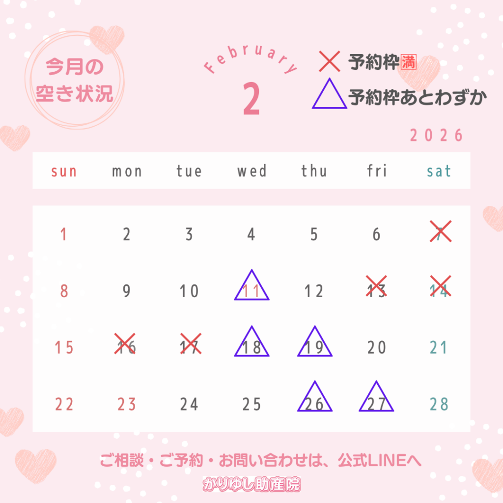 2月の予約空き状況を更新いたします。