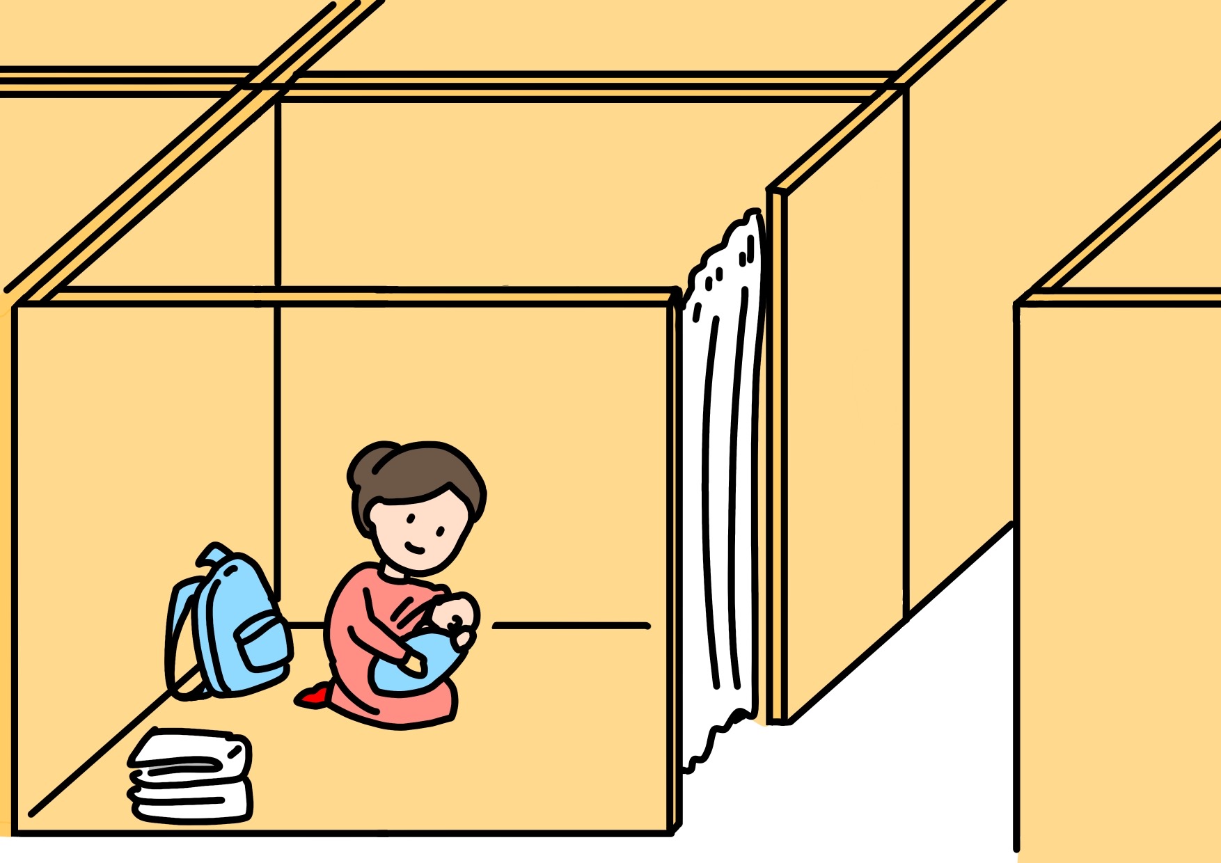 避難所に着いたら、まずは授乳やおむつ替えができる場所を確認しましょう。